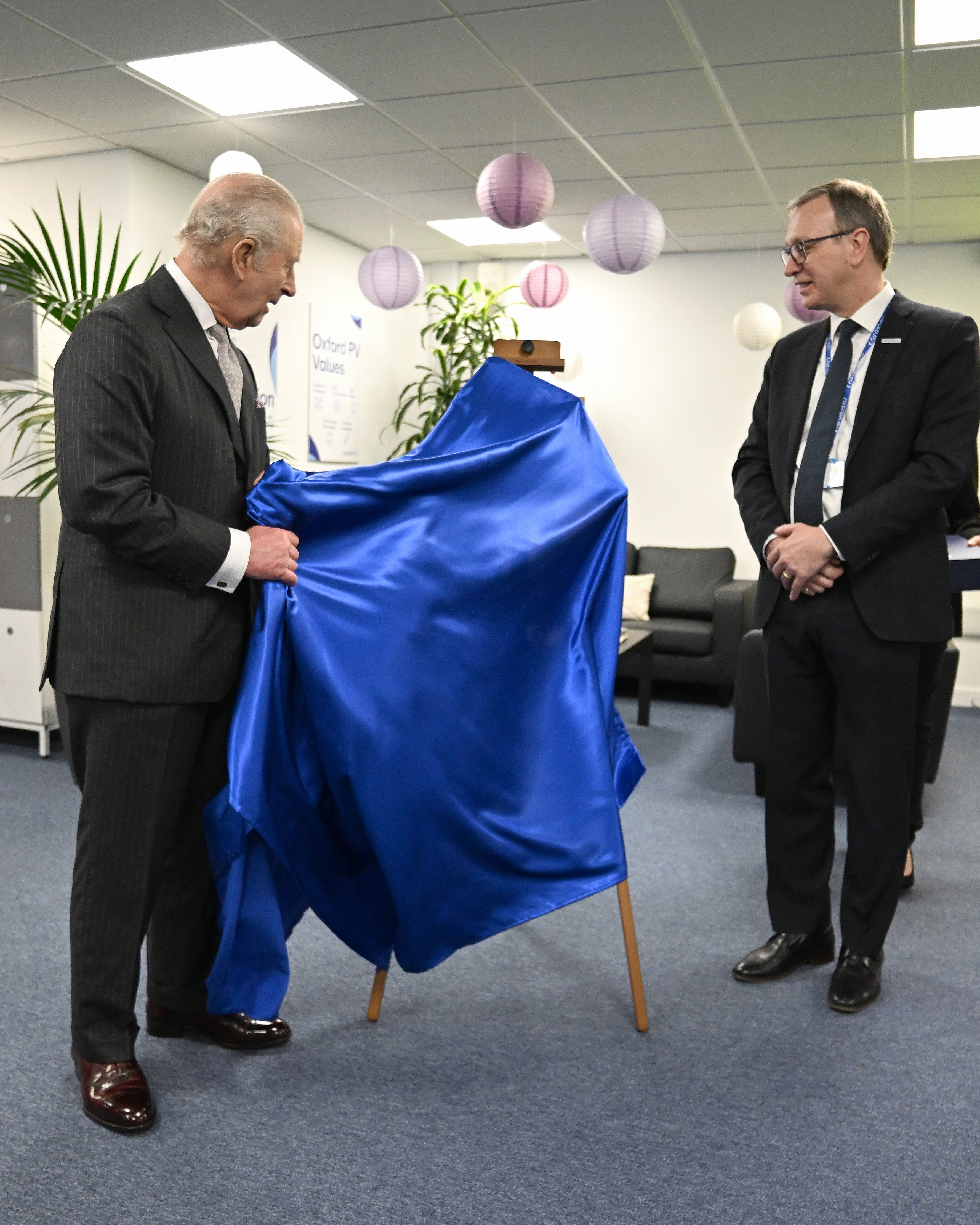 King Charles has hailed the “wonderful” work of a British firm creating the following era of photo voltaic panels, although he light-heartedly referred to the “disaster” of his plaque unveiling.